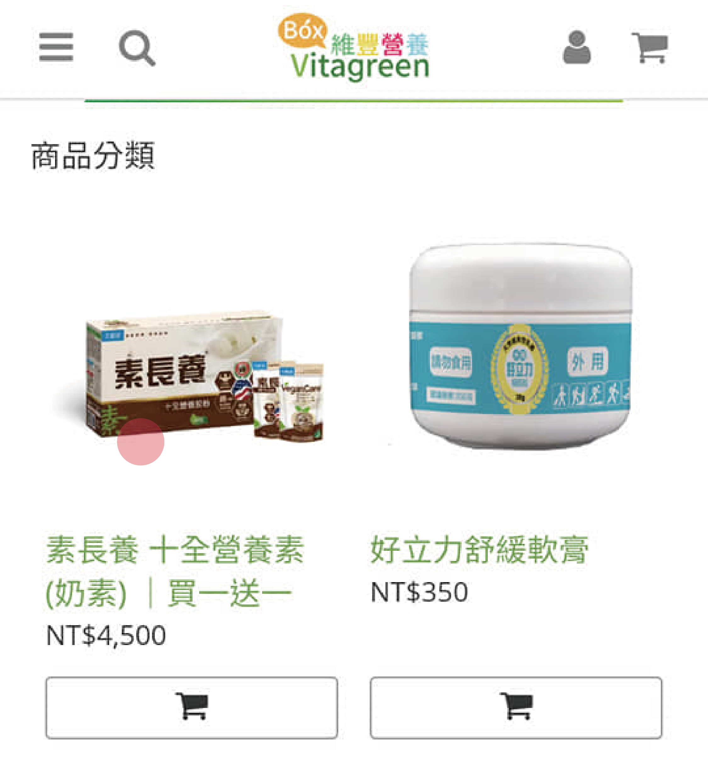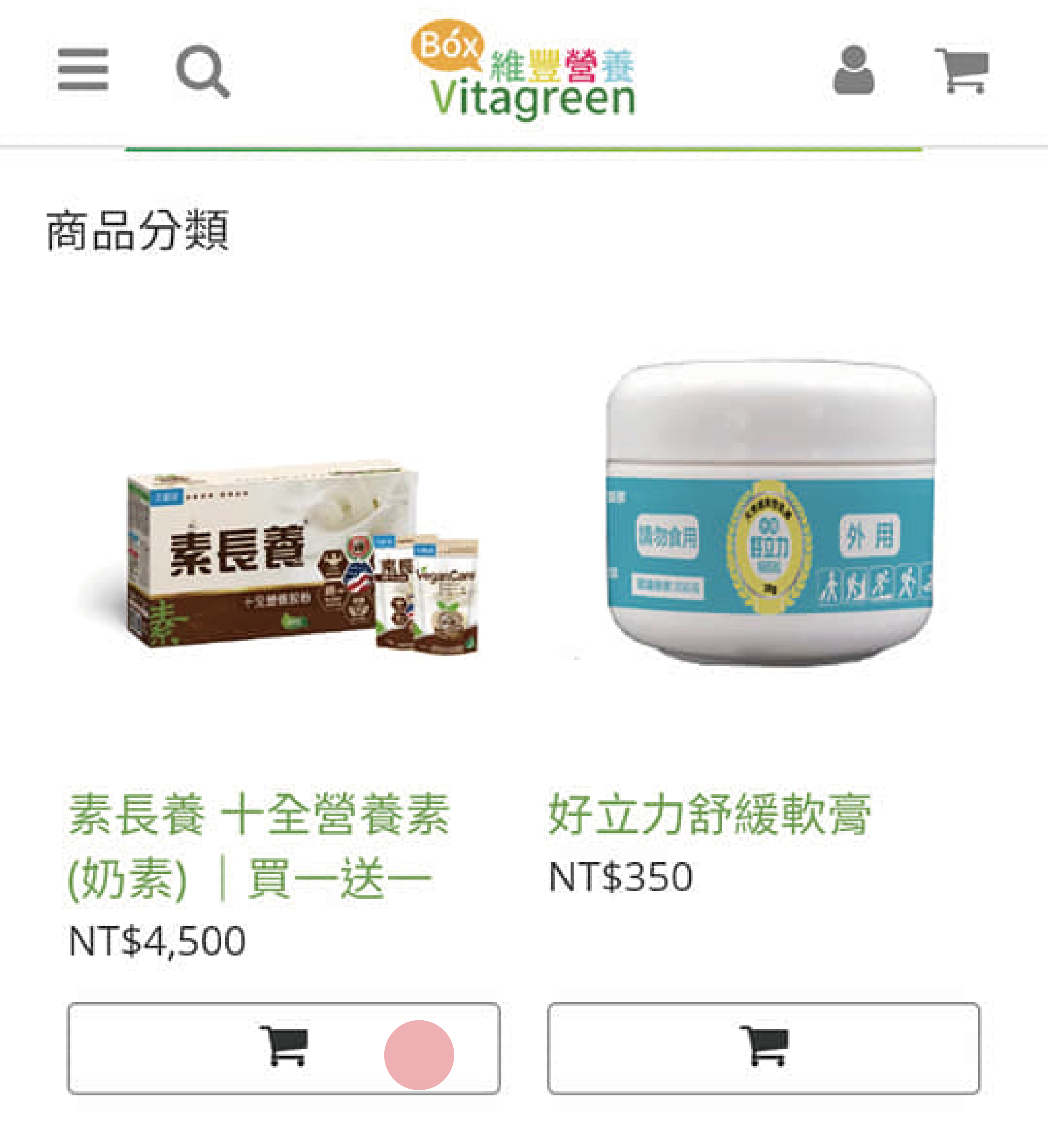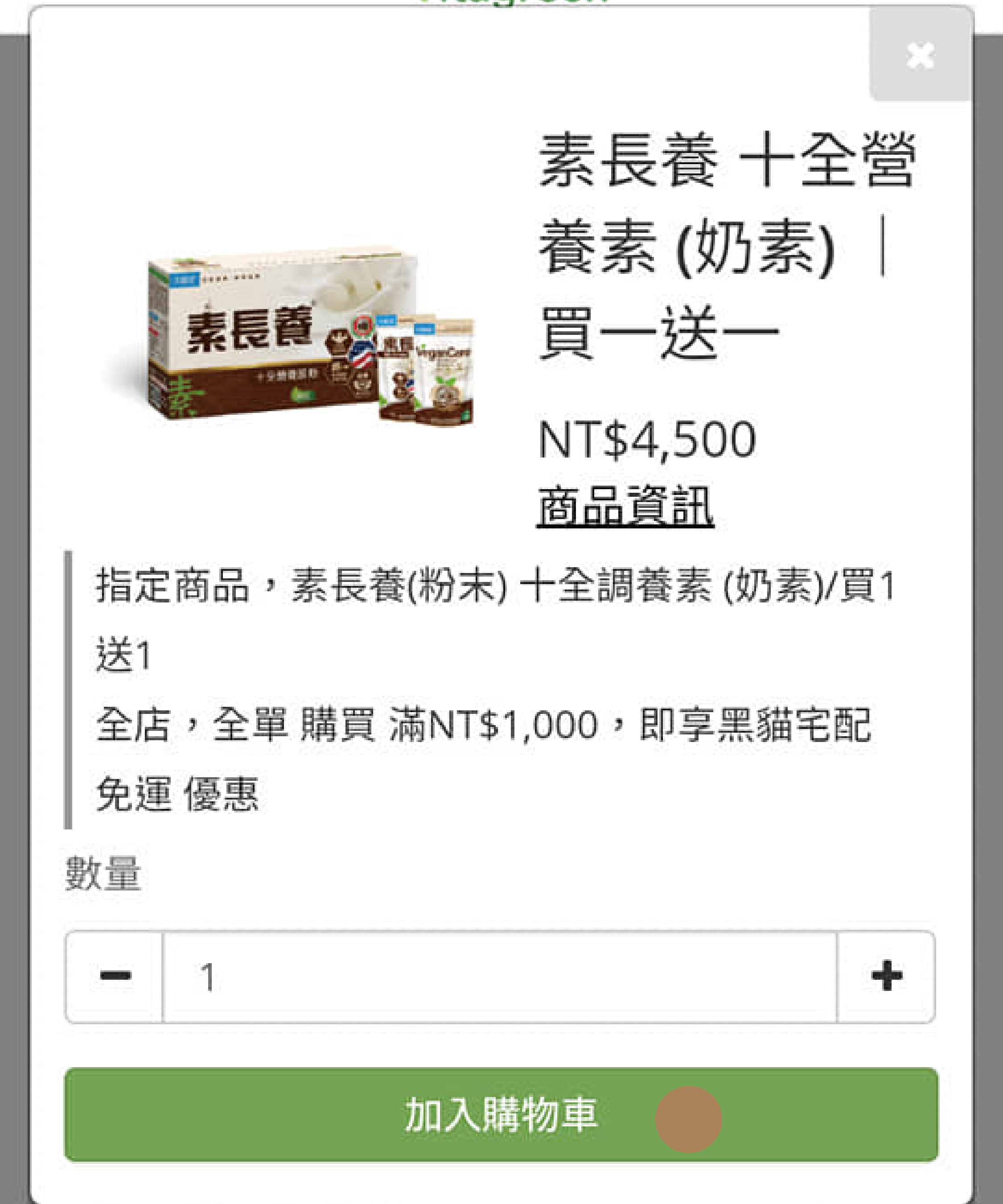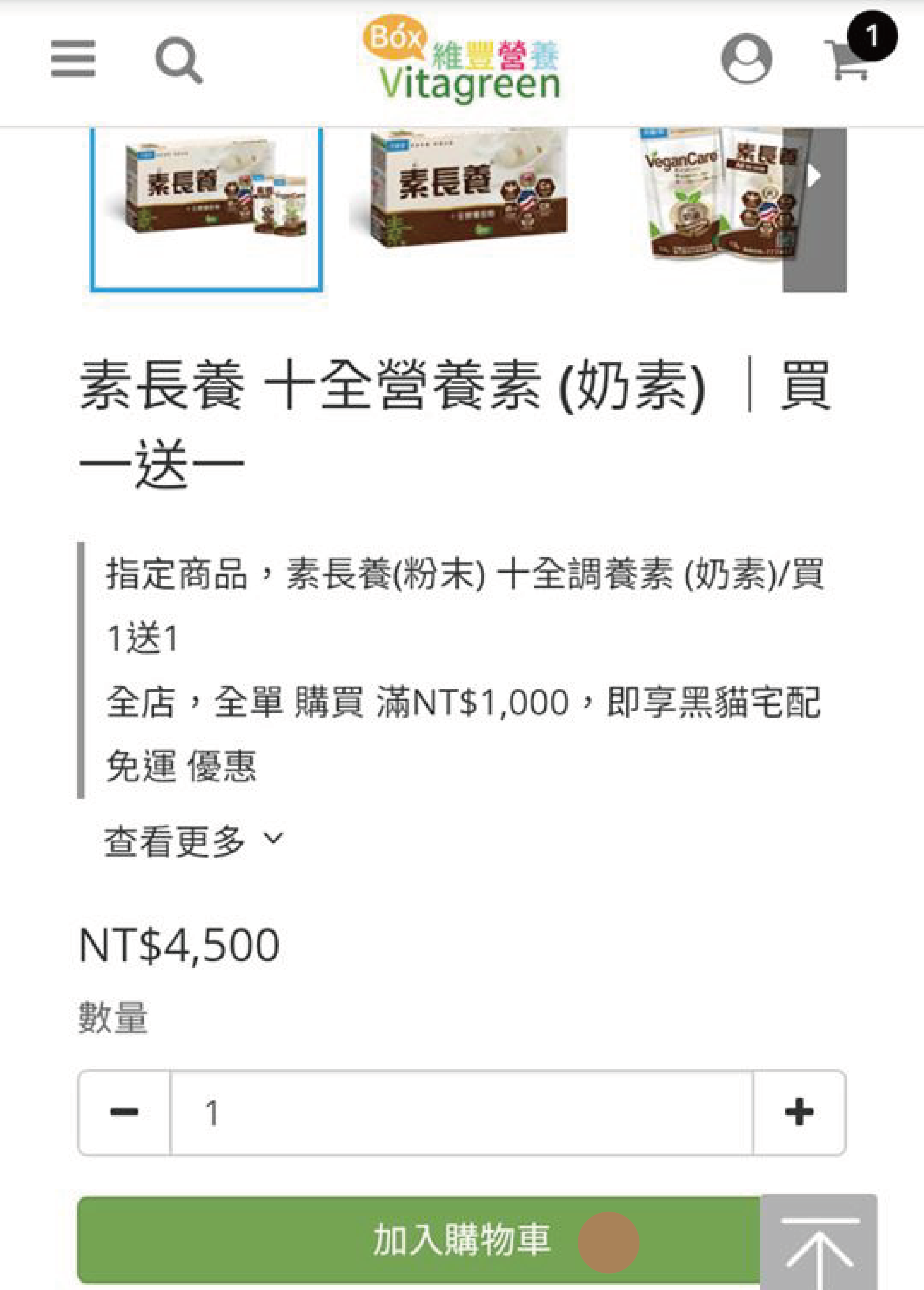 1-1滑鼠/手指移至產品照片後,出現加入購物車,選好「數量」點擊加入購物車。