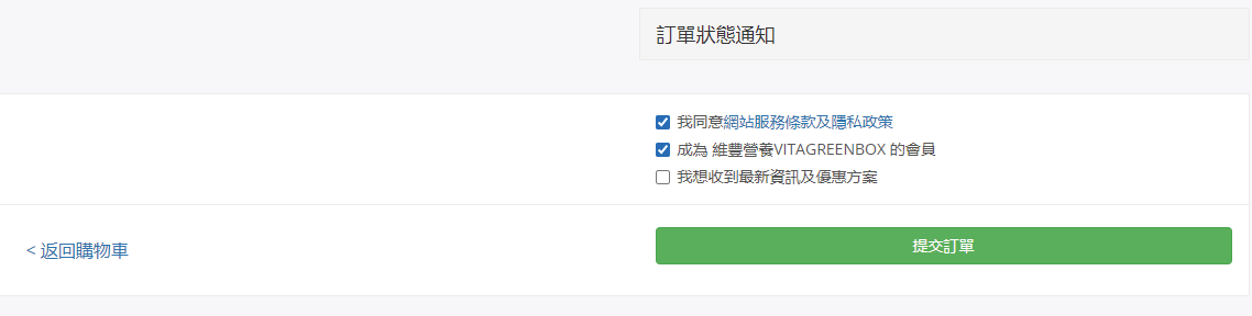 ※如未加入會員歡迎勾選『成為維豐營養VITAGREENBOX的會員』,以會員身分購買則無需勾選,建議先加入會員再來購買,才不會影響權益。