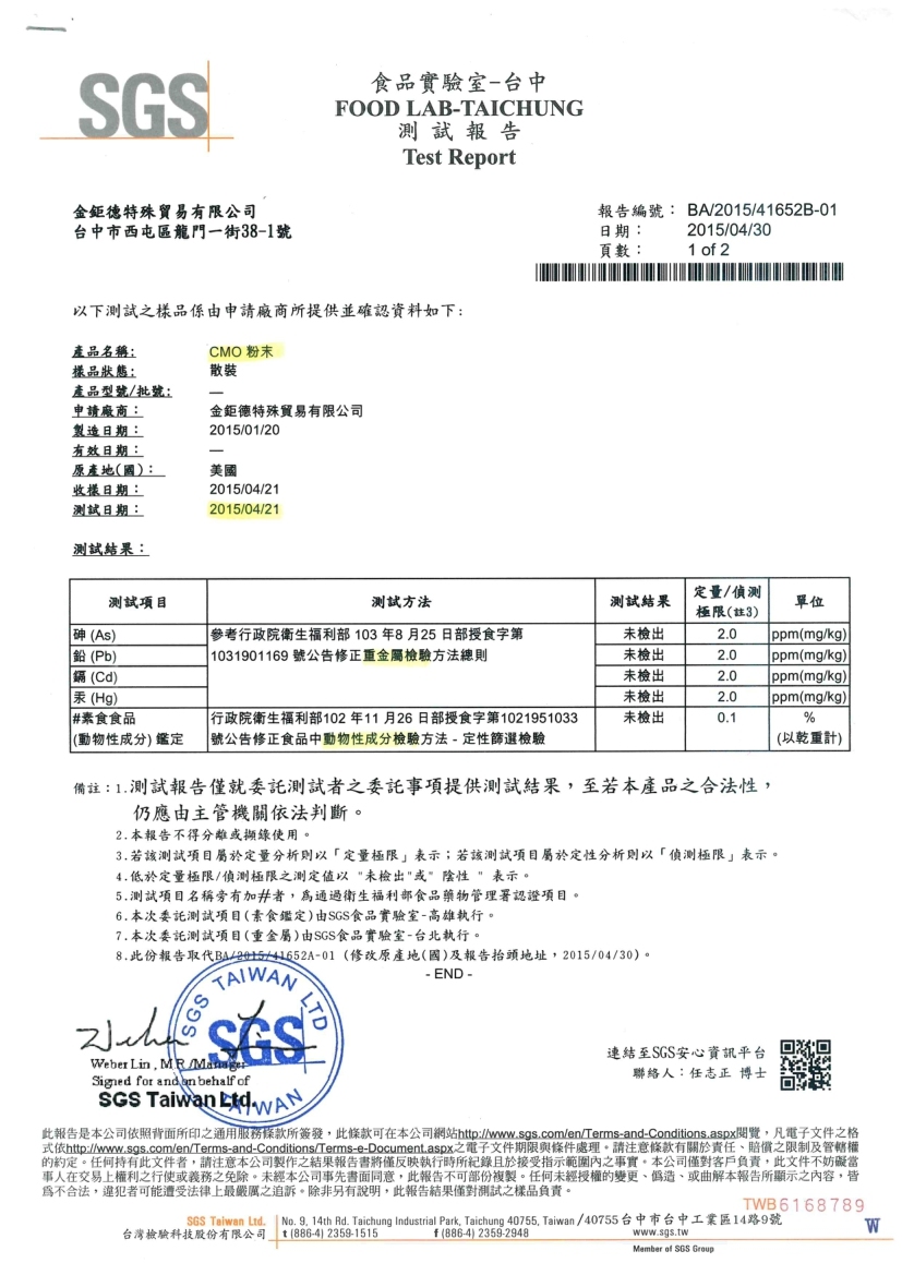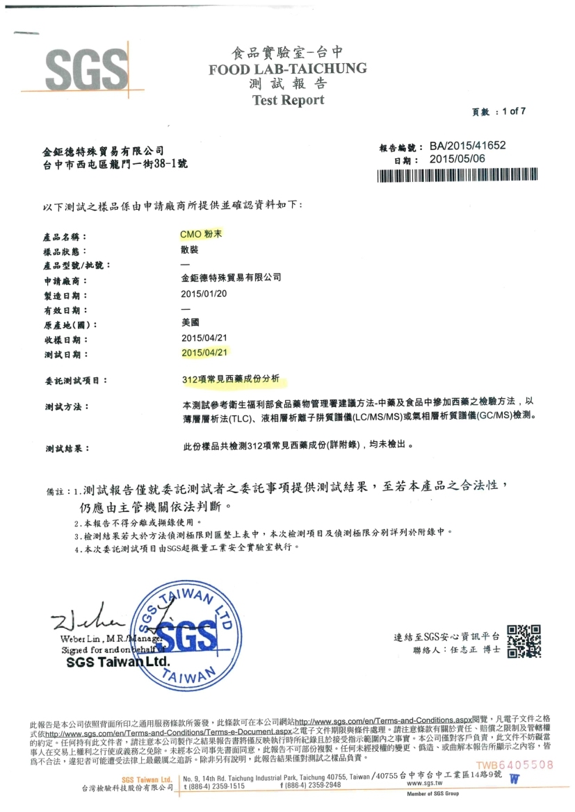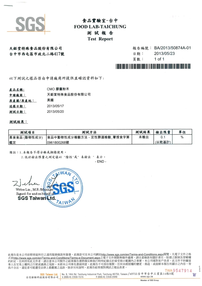 SGS純素認證(未檢出:豬、牛、魚、羊、雞、蛋)