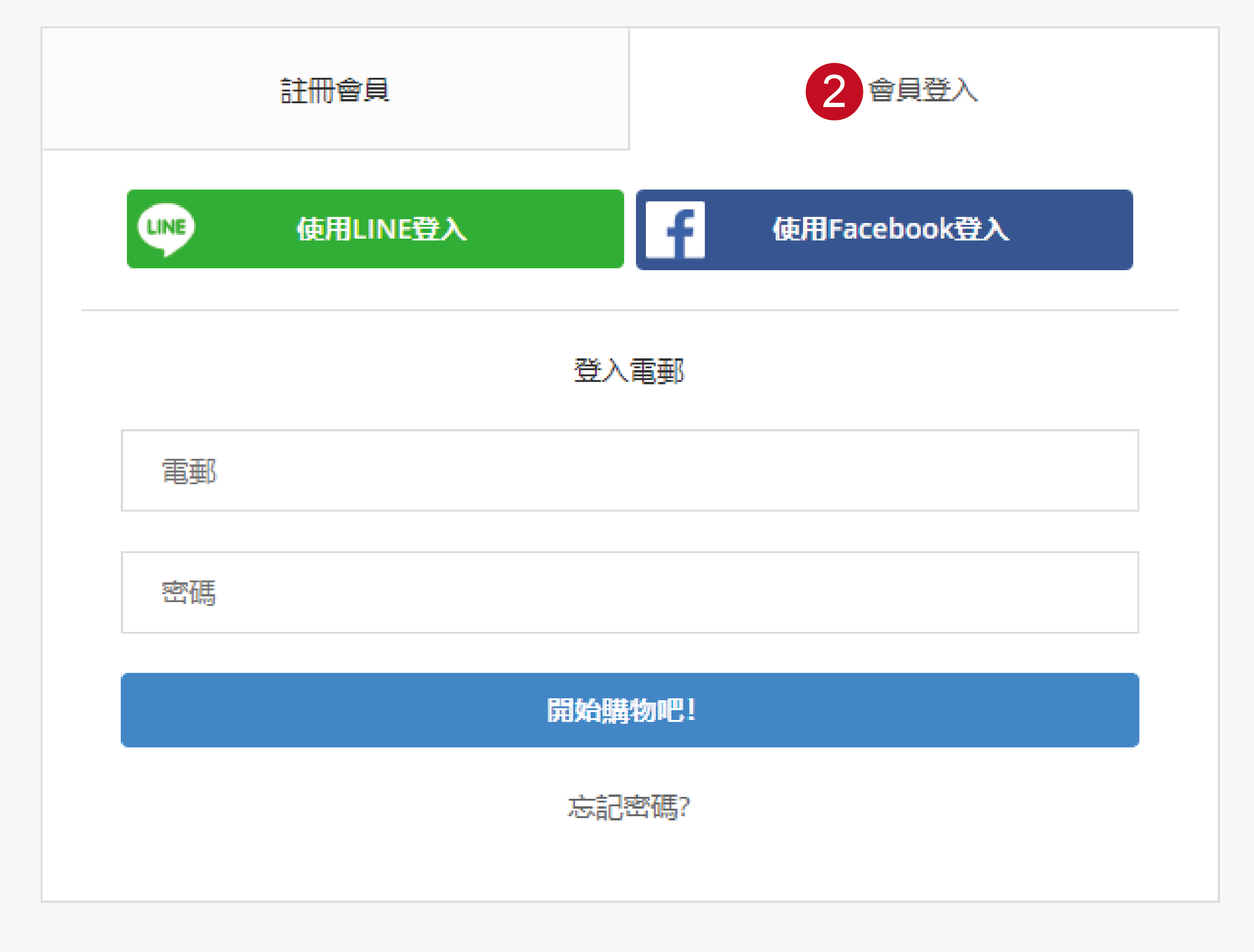 登入會員有分成『LINE』、『Facebook』、『網站註冊』三種。