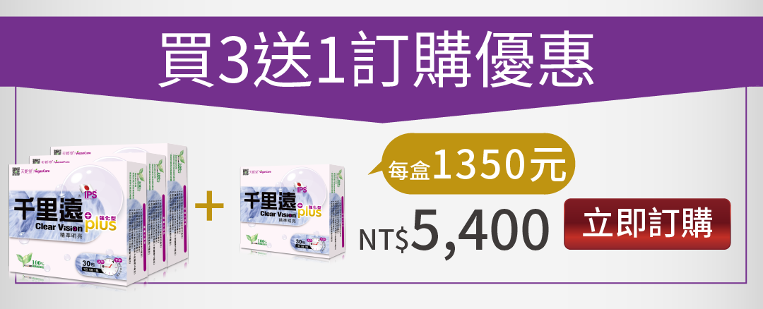 享買3送1優惠!千里遠,鑽石級守護配方納豆萃取物IPS,獨家專利配方,葉黃素、玉米黃素、蝦紅素、花青素、藍莓萃取物、維生素A,每天只要1包。