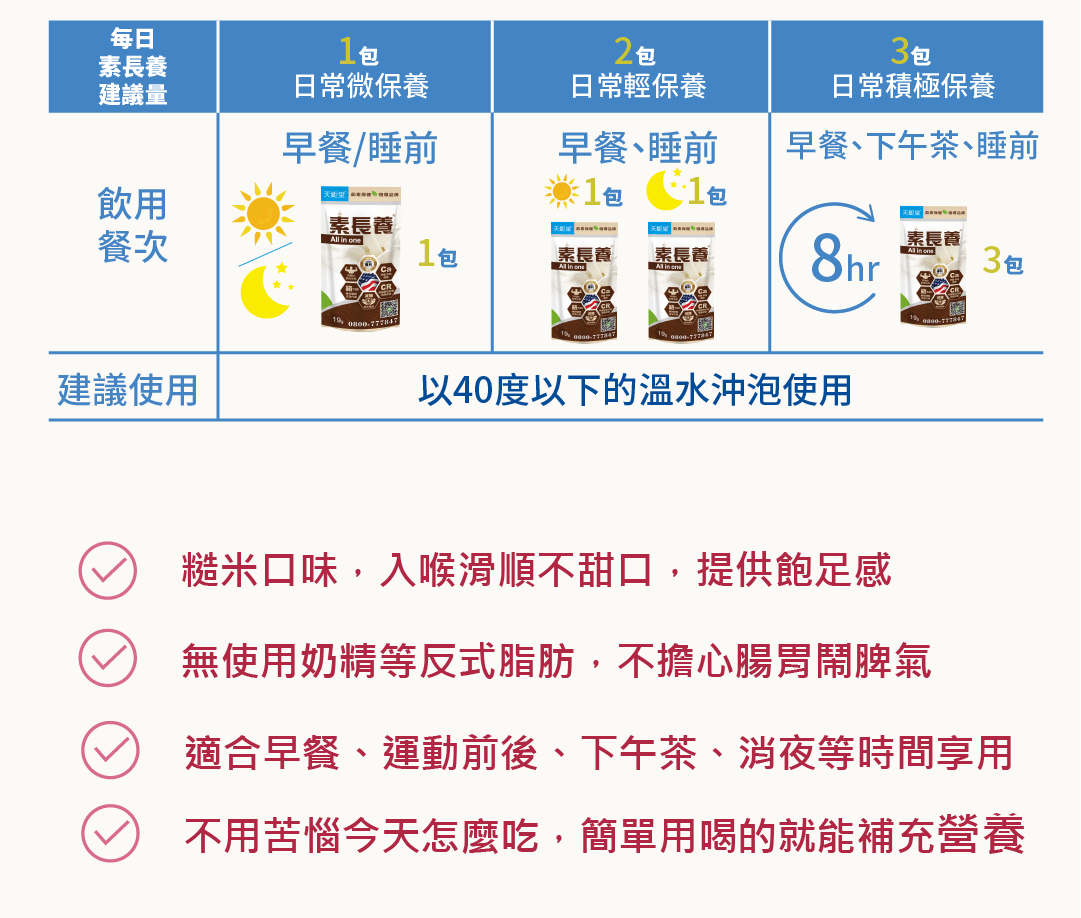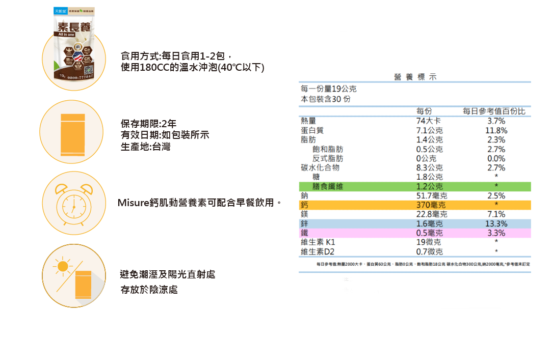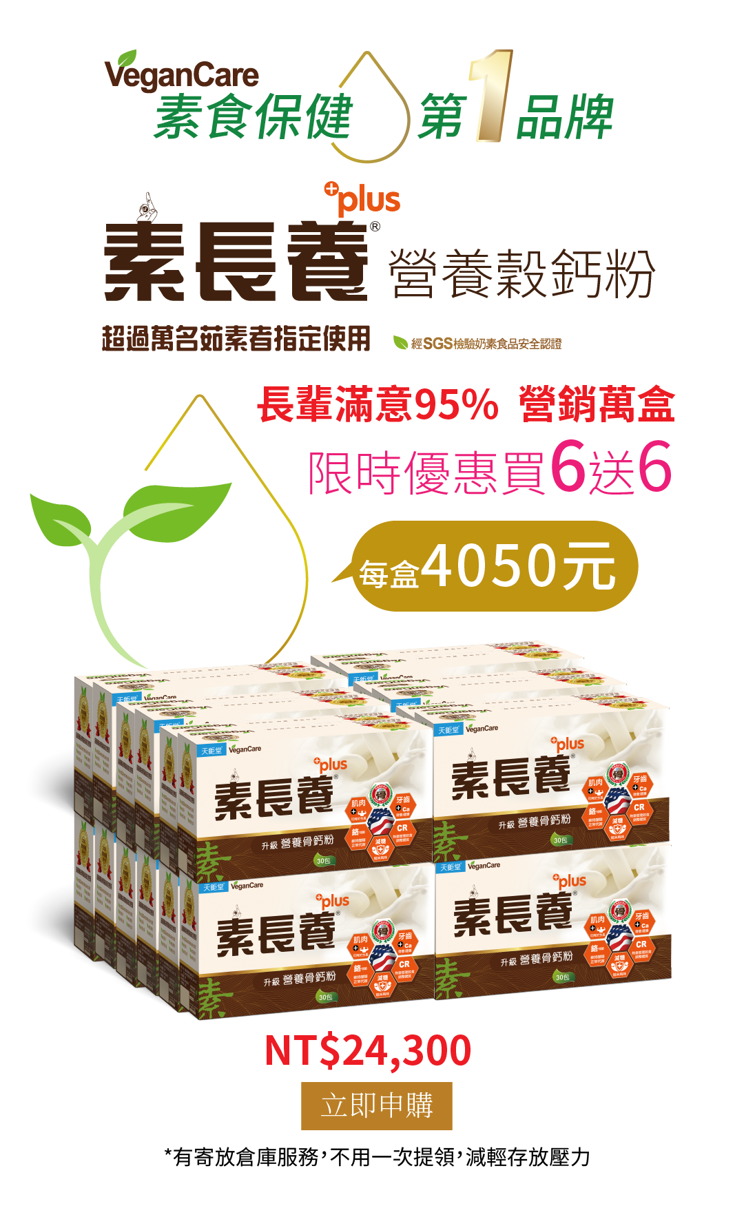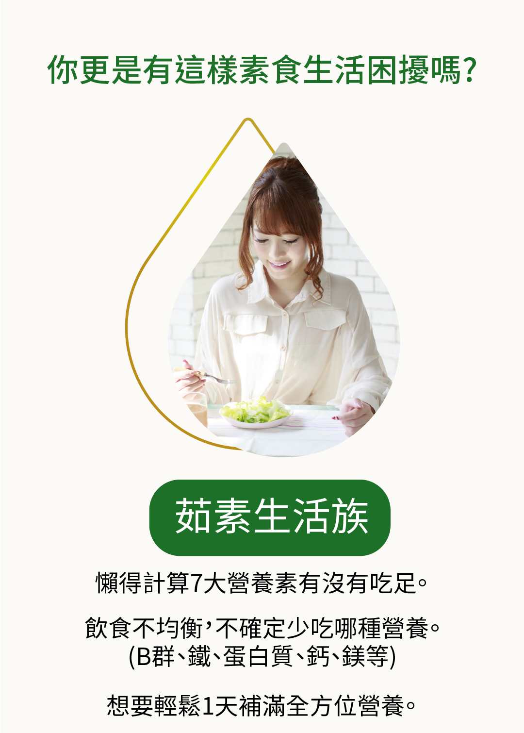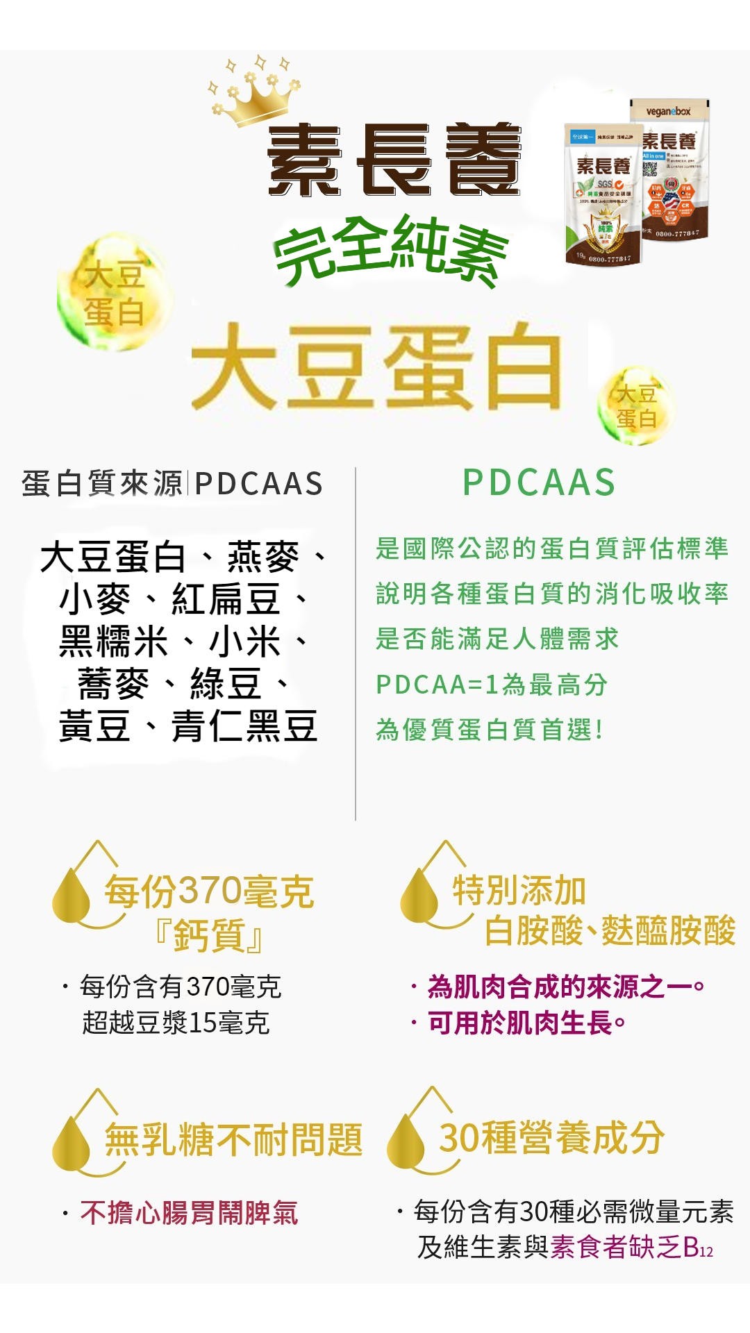 素長養|給茹素者多方的營養輔助,不易攝取到的七大營養素簡單吸收,每天一包提供蛋白質、鈣、B12、D2等活力營養素,用喝得,體力更有勁。